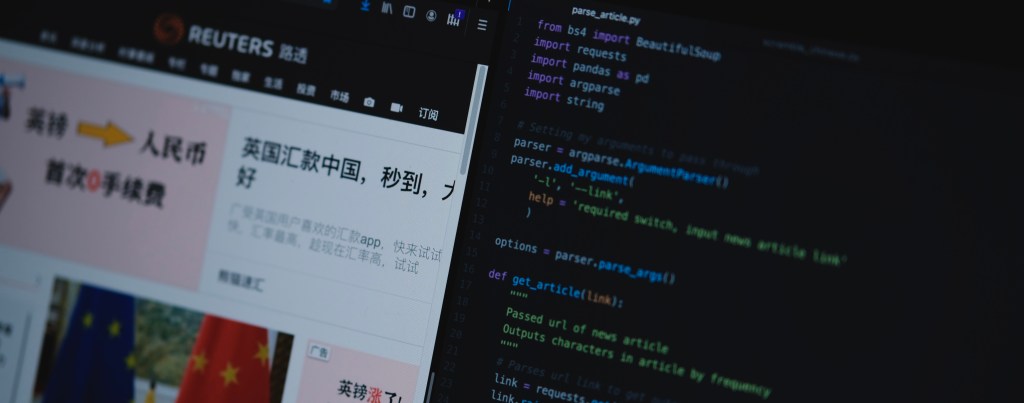 The first part of coding parse_article was figuring out the html structure of different news posts to make sure the program scanned only the actual article rather than the side headlines and advertisements that may show up on the webpage. And because this was focused on Chinese, the program splits up the article’s text into a long list of individual characters.7